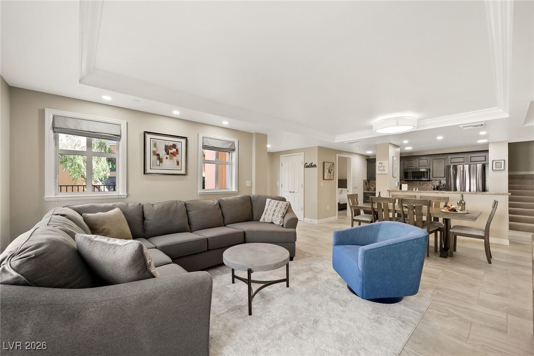 $2,737Live where Lake Las Vegas comes alive. Located in Viera, this exceptional townhome style residence is one of only four in the community and sits right at The Village—just steps to the lakefront, restaurants, boutiques, and seasonal events. Season’s Grocery is only a few steps away for everyday convenience. Enjoy a three bedroom floor plan with two bedrooms on the main level and a private upstairs suite, plus two balconies that capture the energy of the Village, including fireworks and entertainment views. The home is offered fully furnished for an easy move in and includes a washer and dryer. Thoughtful upgrades include beautifully designed closet systems and a rare gas cooktop, a unique feature within Viera. Community amenities include a pool, spa, and workout facility. Approx