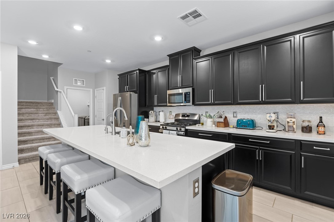 $1,688Welcome to this beautifully maintained 2022-built townhouse located in the desirable Roxbury community of North Las Vegas. Offering 1,645 sf. of modern living space, this home features 3 spacious bedrooms and 2.5 bathrooms with a thoughtful open-concept design. The kitchen showcases sleek quartz countertops, beautiful backsplash, stainless steel appliances, a large center island, and ample cabinetry with pulls, perfect for entertaining or everyday living. The adjoining living and dining areas provide a bright and inviting atmosphere. Upstairs, you’ll find generously sized bedrooms which one has a walk in closet, including a comfortable primary suite with a private bath. Enjoy the convenience of backyard access, ideal for outdoor relaxation. Additional highlights include a 2-car garage with EV charger plug and energy-efficient construction. Located near shopping, dining, parks, and freeway access, this move-in-ready home combines style, comfort, and convenience in a growing community!