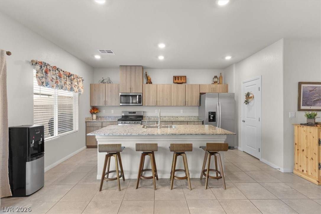 Looking for space, style, and convenience? This 4-bedroom, 2.5-bath home offers 2,127 sq ft in the desirable Valley Vista master plan community. Tile flooring downstairs and plush carpet upstairs create a comfortable, functional layout. The modern kitchen features granite countertops, stainless steel appliances, and an open design that flows seamlessly into the family and dining areas, perfect for everyday living and entertaining. Step outside to a fully landscaped backyard with a gazebo, ideal for relaxing evenings or weekend gatherings. Located near parks, shopping, dining, and with easy access to Nellis and Creech Air Force Bases. Assumable VA loan available for qualified buyers. 3756 Corellia Ave, North Las Vegas.