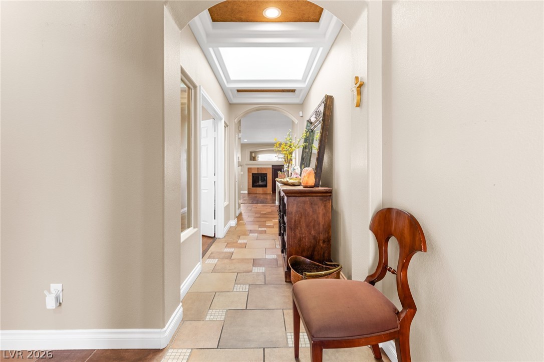$2,418Unbeatable Summerlin location in Talega at the Vistas. Former model home directly across from park/grassy area on a low traffic street. Single story with skylights and incredible natural light, with no direct rear neighbor. Backyard is finished and low maintenance and features a covered patio. Interior features crown molding and ceiling fans throughout. Useful floor plan with a front bedroom that gets tons of natural light separated from the rest of the house, great for home office or guest suite. Middle bedroom has french doors and is currently configured as a flex space. Primary bed features multiple windows, crown molding, upgraded bath with modern tile shower surrounds, soap niche, and new fixtures. Kitchen has modern cabinet finishes and low wear and tear. Upgraded flooring throughout!