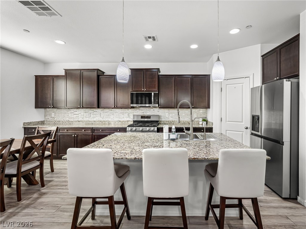 $1,802Open floor plan! 4 Beds + 2.5 baths! TONS of upgrades! WELL MAINTAINED. Clean & in great condition. Luxury plank flooring. Plenty of parking spaces. Spacious chef’s kitchen w/ oversized granite island, extended cabinetry, ample counter space, & generous walk-in pantry w/ backsplash, stainless steel sink, pendant lightings, all newer LG stainless refrigerator, stove, dishwasher & microwave included. Breakfast area w/ direct access to private backyard w/ covered patio. Private gate side yard dog run. Primary bedroom w/ en-suite bathroom is separated from the other bedrooms for more privacy. Primary bathroom has separate shower & tub with dual vanity sinks w/ double closets. Separate laundry room. Community pool in Emerson community. Master community plan offers multiple parks, playgrounds, splash pads, pickleball/tennis courts, basketball court, walking/jogging trails, & more! PRIME LOCATION Near freeways, shopping, dining, grocery stores, parks, movie theatre, gym & schools and more!