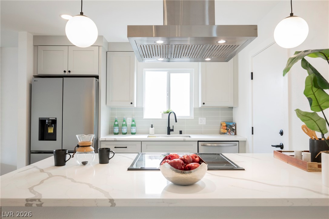 $1,825Welcome to this beautifully updated single-story home offering 3 bedrooms and 2 bathrooms. Inside, the home opens to a bright and airy living area featuring wide-plank flooring, fresh neutral tones, and a stunning white brick fireplace that serves as a cozy focal point. Large sliding glass doors fill the space with natural light and provide seamless access to the covered patio—perfect for entertaining or relaxing year-round. The fully remodeled kitchen showcases sleek, contemporary design with quartz countertops, custom cabinetry, stainless steel appliances, stylish pendant lighting, and a modern range hood, making this kitchen both beautiful and functional. With thoughtful upgrades throughout and a clean, modern aesthetic, this move-in ready home is the perfect blend of comfort and style.