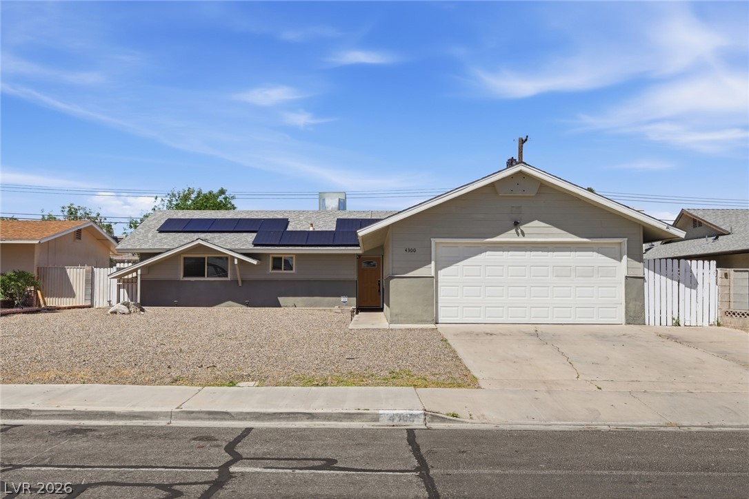$1,893Completely Renovated w/ Solar! This charming and inviting home nestled in an easily accessible neighborhood. This spacious residence boasts four bedrooms and two fully remodeled bathrooms, providing ample space for comfortable living. Step into the heart of the home, where the kitchen combines style and functionality. Upgraded with sleek white shaker cabinets, quartz countertops, and a convenient island. The matching stainless steel appliances add a modern touch. Adjacent to the kitchen, is the family room filled with warmth and coziness. Gather around the fireplace on chilly evenings, creating memories with loved ones in this inviting space. Primary bedroom is oversized and features an ensuite with a gorgeous shower. Beyond the interiors, the property offers backyard with covered patio ideal for enjoying the Las Vegas sunshine. Financed solar panels with assumable loan to reduce energy bills!