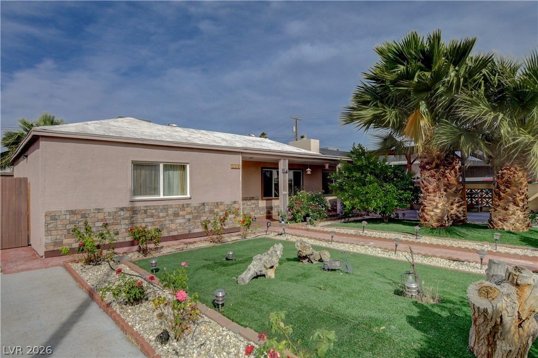 $2,053A prime opportunity awaits in a desirable location. This exquisite, upgraded single-story home boasts five bedrooms and three bathrooms, providing a cozy family retreat in an emerging neighborhood of Henderson. Notably, the property is free from homeowners association (HOA) restrictions. The property features ample parking space for several vehicles. The front yard is adorned with stunning palm trees, roses, and artificial grass turf, creating a picturesque ambiance. The backyard includes a detached casita with two bedrooms and one full bathroom, accessible via a separate entrance. A spacious covered patio with a fully equipped outdoor kitchen enhancing the resort-like atmosphere of the backyard. This exceptional opportunity presents a lucrative investment in the rapidly growing and developing city of Henderson. You can occupy one house while renting the casita for short-term stays, generating additional income to cover your mortgage.