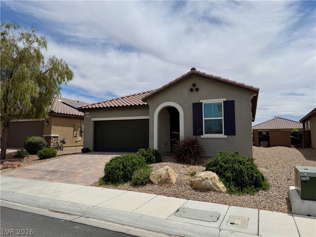 $1,916Welcome Home to This Beautiful Like New Single-Story Gem in Tule Springs! Step into modern comfort with this 3 bedroom, 2 bath home offering 1,585 sq ft of thoughtfully designed living space. This single-story layout features tile flooring throughout the main areas for a clean, durable feel, with plush carpet in all bedrooms and a luxury shower in the primary. The heart of the home shines with granite countertops, stylish pendant lighting, 9ft ceilings and upgraded ceiling fans and lights throughout. Enjoy energy savings and peace of mind with solar, tankless hot water heater, soft water loop, and a newer AC system. Window coverings are already in place, and the front door security gate adds an extra layer of safety and convenience.Outside, unwind on the covered patio, ideal for morning coffee or evening gatherings. The garage offers convenient storage shelves. This home combines practicality, style in one of North Las Vegas most desirable communities. Hurry it won't last long!