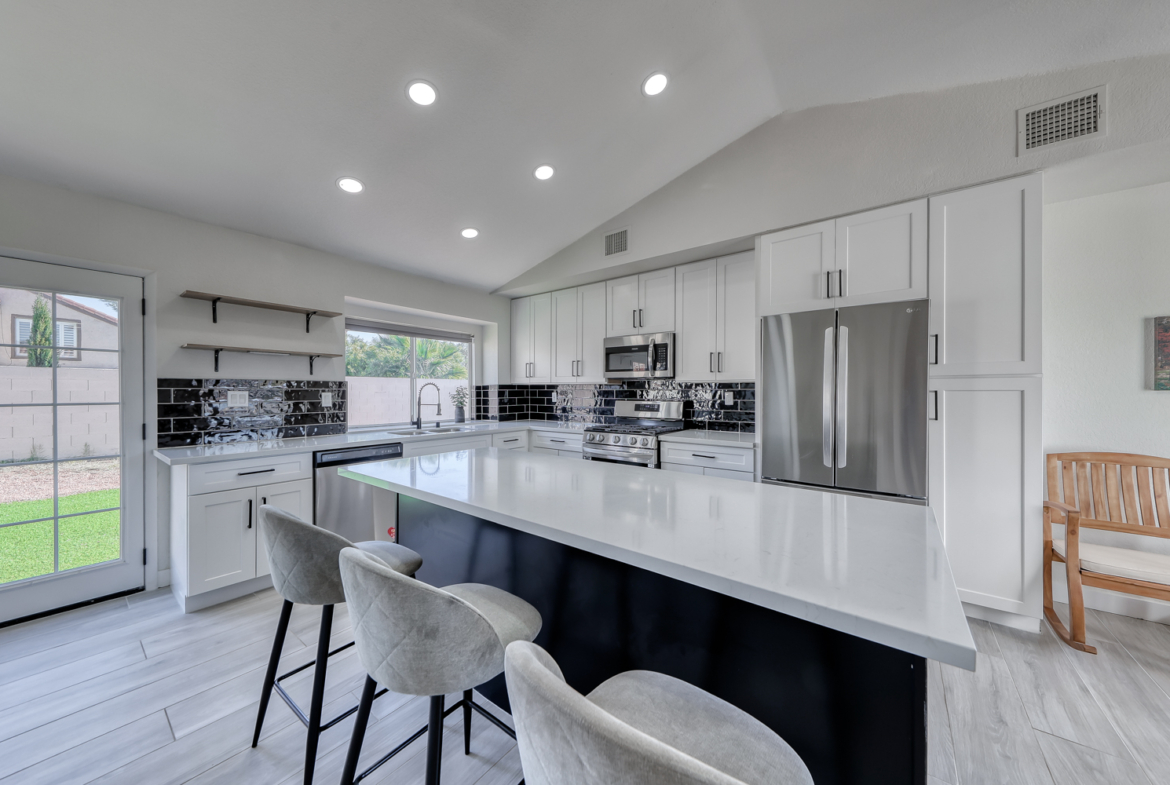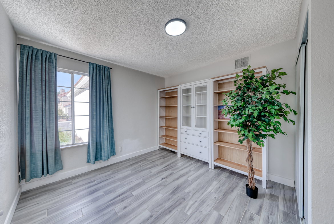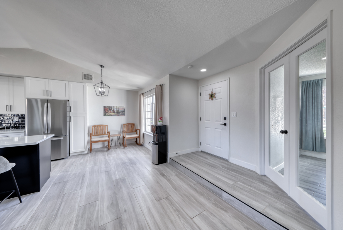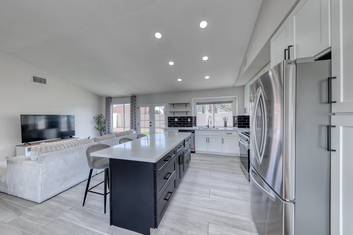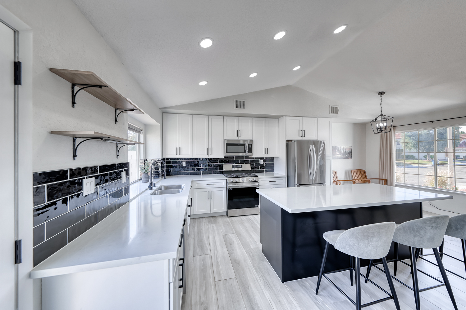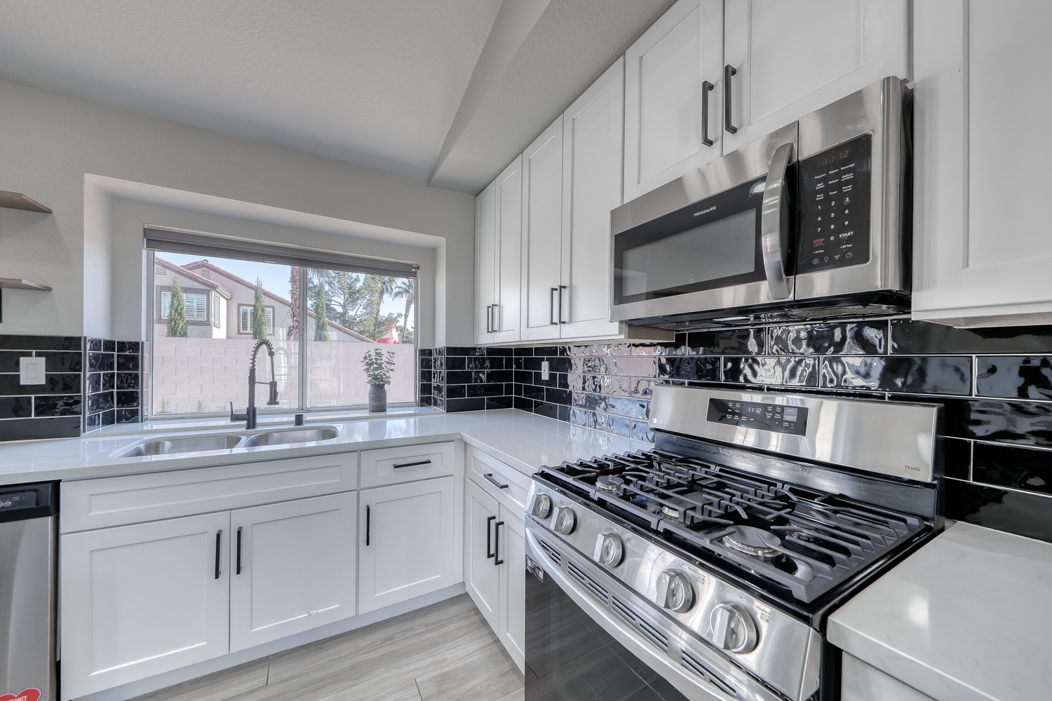 Located in the beautiful community of The Lakes. This beautiful and move-in ready, 3-bedroom, 2-bath home offers modern upgrades throughout. Newer ceramic tile flooring, modern interior paint, and oversized baseboards set a sleek and cohesive tone. The updated kitchen features crisp white shaker cabinetry with soft-close hardware, quartz countertops, and stainless steel appliances. Both bathrooms have been redesigned with stylish custom tile showers. Relax by the fireplace or enjoy the low-maintenance backyard complete with artificial turf—perfect for year-round enjoyment. A spacious 2-car garage provides added storage and convenience. This home delivers contemporary design, quality finishes, and everyday comfort.
