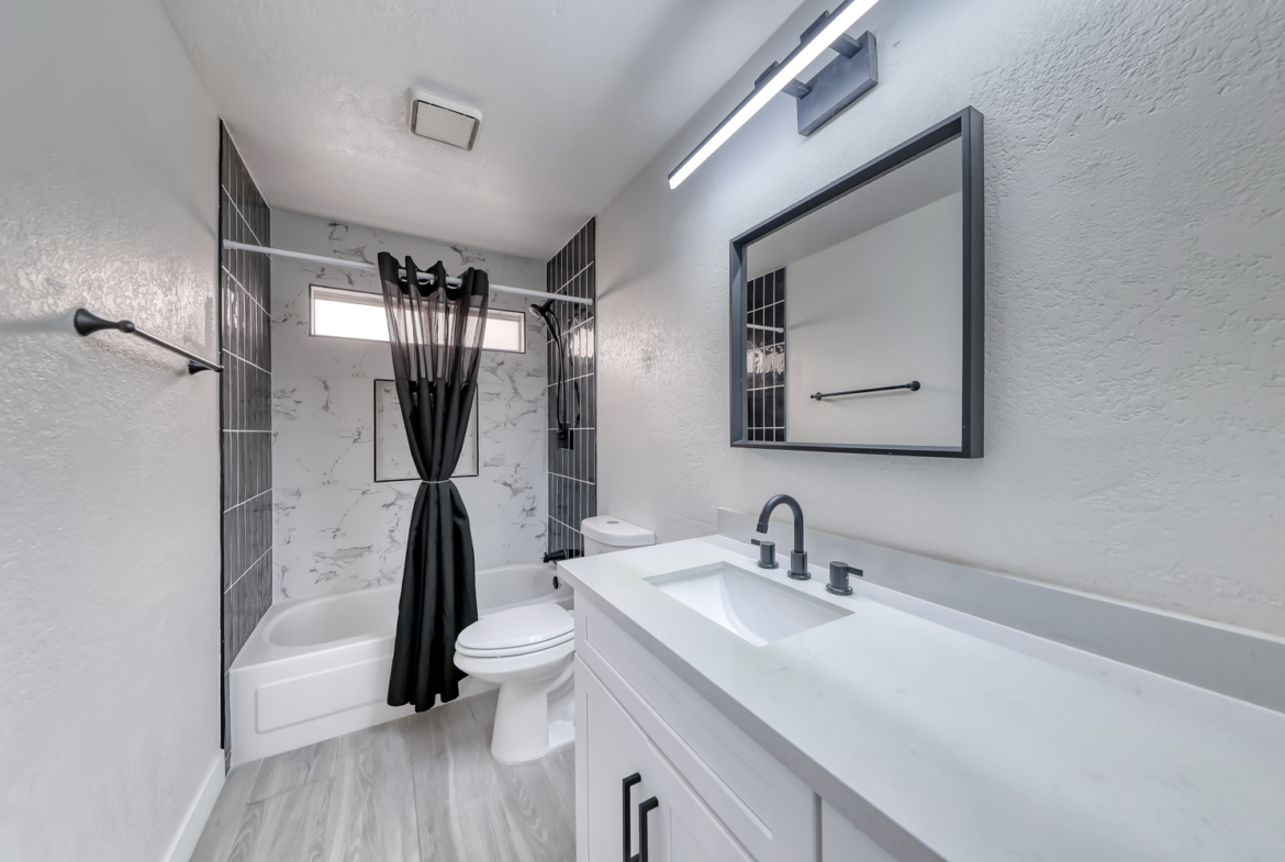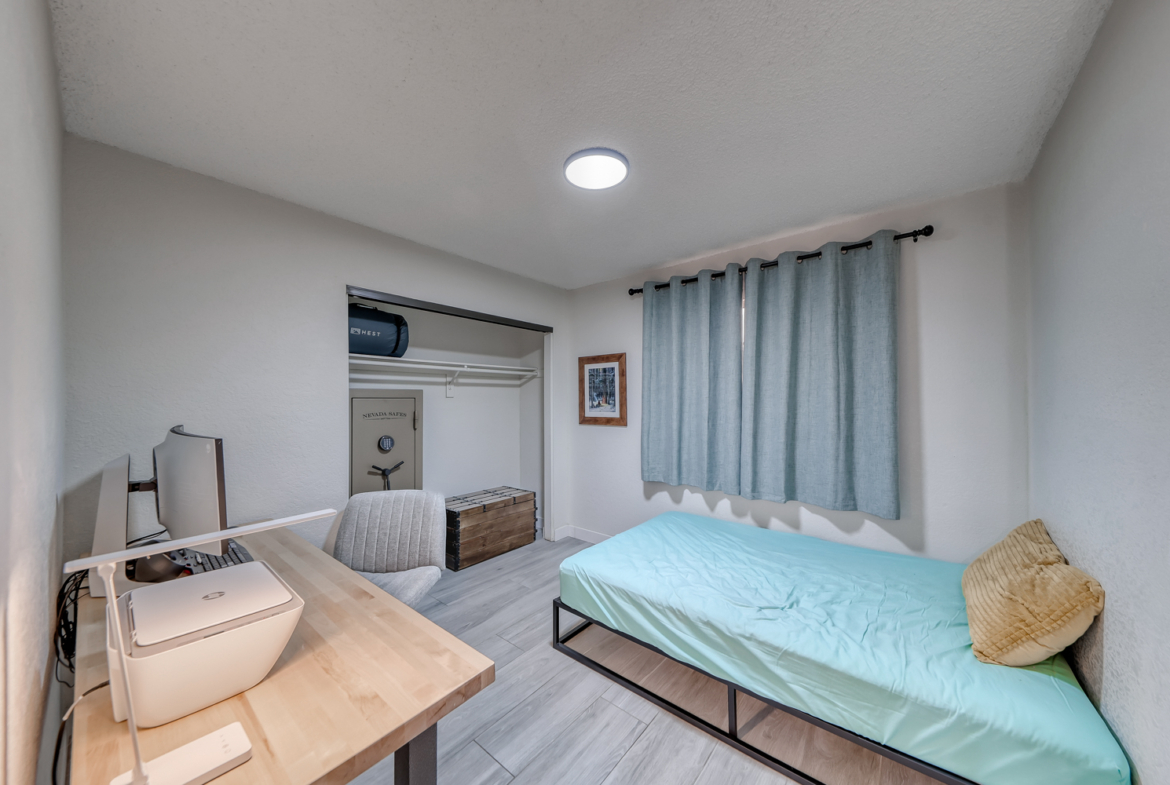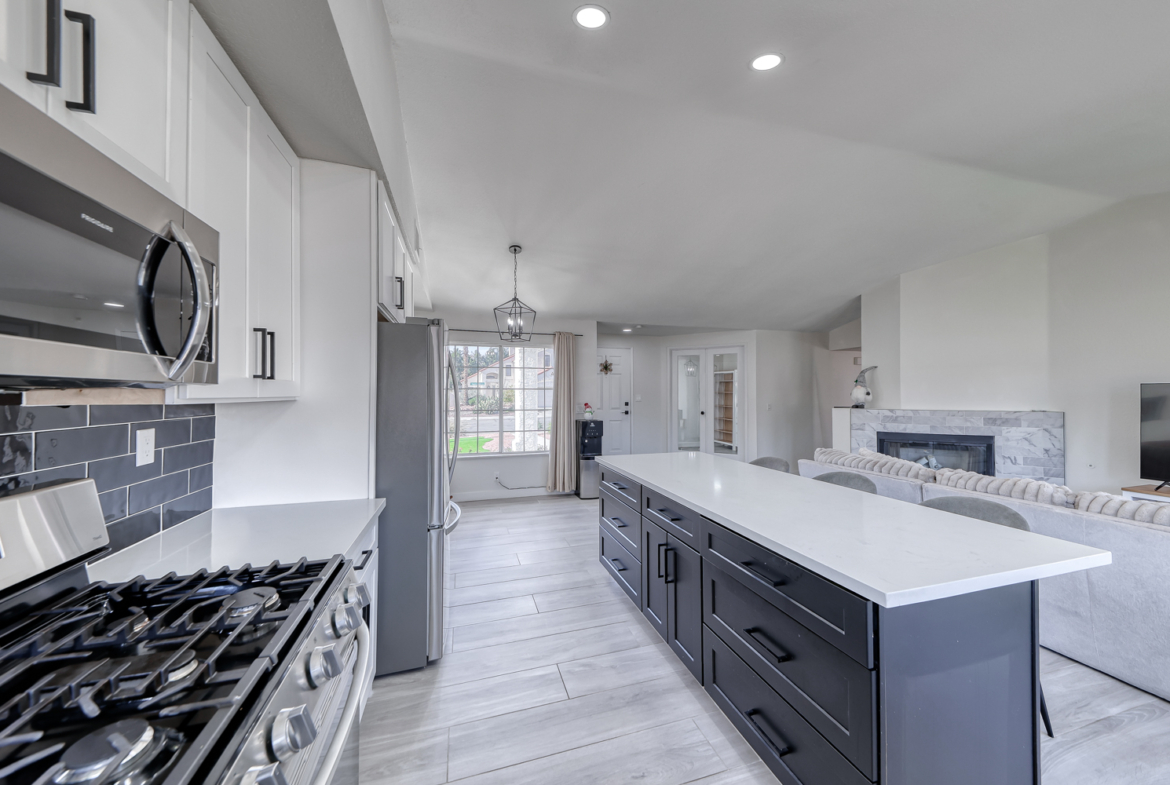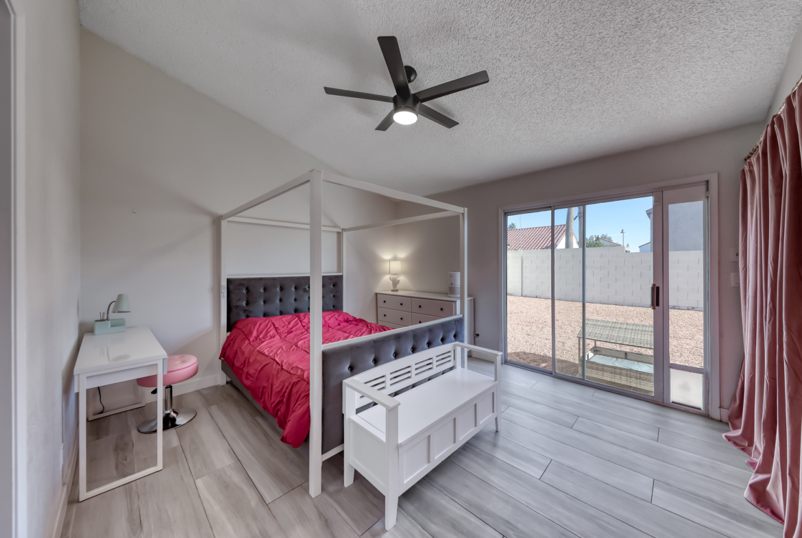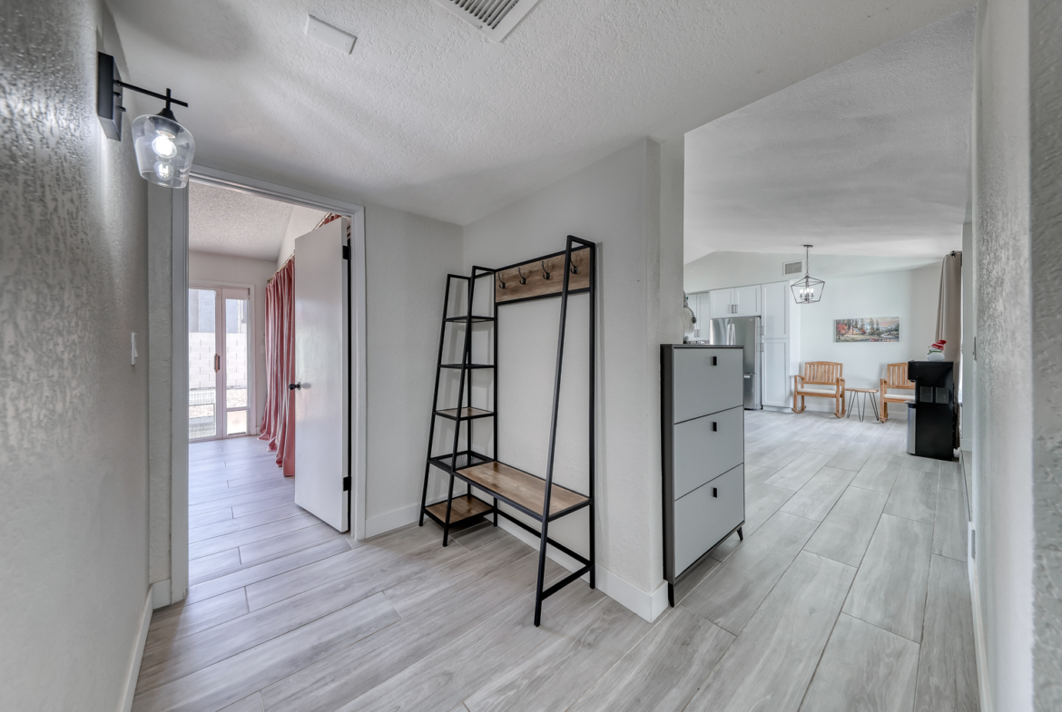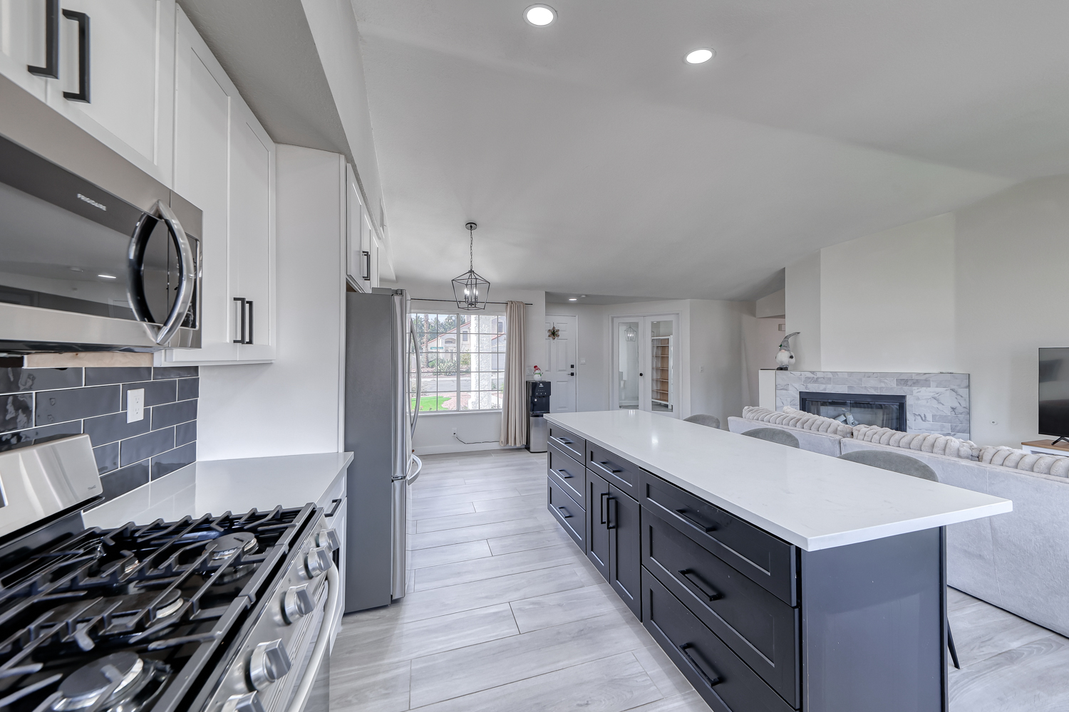 Located in the beautiful community of The Lakes. This beautiful and move-in ready, 3-bedroom, 2-bath home offers modern upgrades throughout. Newer ceramic tile flooring, modern interior paint, and oversized baseboards set a sleek and cohesive tone. The updated kitchen features crisp white shaker cabinetry with soft-close hardware, quartz countertops, and stainless steel appliances. Both bathrooms have been redesigned with stylish custom tile showers. Relax by the fireplace or enjoy the low-maintenance backyard complete with artificial turf—perfect for year-round enjoyment. A spacious 2-car garage provides added storage and convenience. This home delivers contemporary design, quality finishes, and everyday comfort.